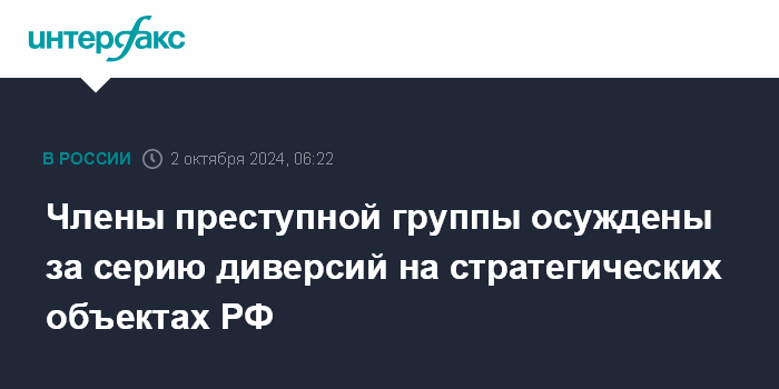 Члены преступной группы осуждены за серию диверсий на стратегических объектах РФ