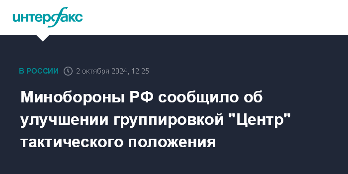 Минобороны РФ сообщило об улучшении группировкой "Центр" тактического положения
