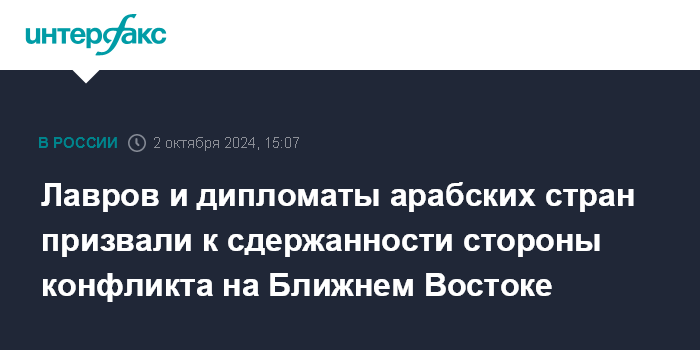 Лавров и дипломаты арабских стран призвали к сдержанности стороны конфликта на Ближнем Востоке