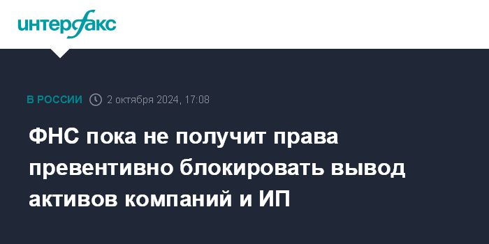 ФНС пока не получит права превентивно блокировать вывод активов компаний и ИП