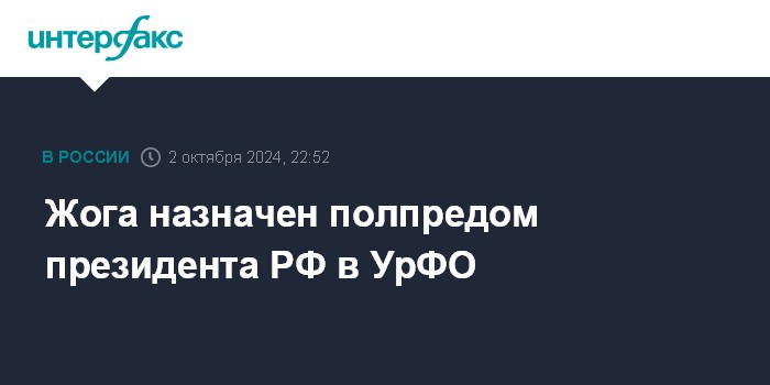 "В соответствии с пунктом "к" статьи 83 Конституции Российской Федерации назначить Жогу Артема Владимировича полномочным представителем президента Российской Федерации в Уральском федеральном округе", - говорится в указе, опубликованном на сайте Кремля.