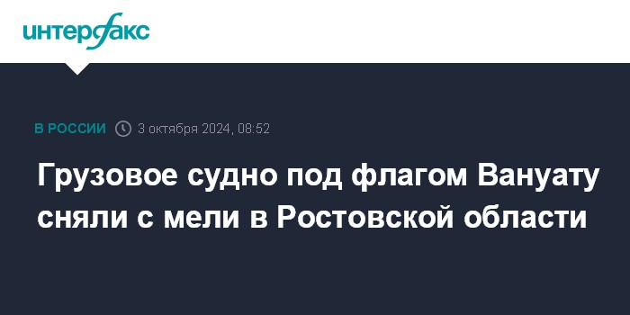 Грузовое судно под флагом Вануату сняли с мели в Ростовской области