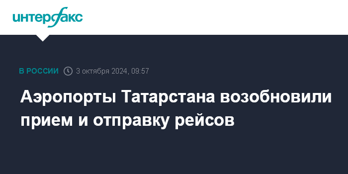 Москва. 3 октября. INTERFAX.RU - Росавиация сняла введенный ранее в четверг временный запрет на прием и отправку авиарейсов международными аэропортами в Татарстане.