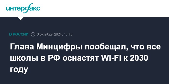 Глава Минцифры пообещал, что все школы в РФ оснастят Wi-Fi к 2030 году