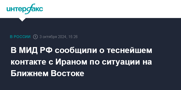В МИД РФ сообщили о теснейшем контакте с Ираном по ситуации на Ближнем Востоке