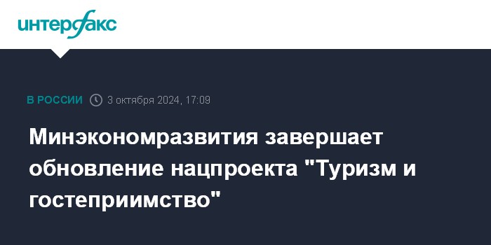 Минэкономразвития завершает обновление нацпроекта "Туризм и гостеприимство"