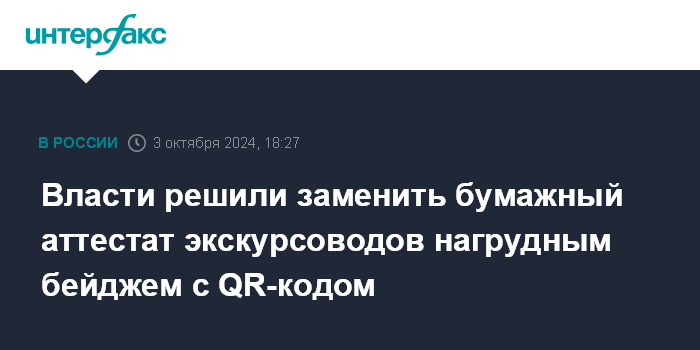 Власти решили заменить бумажный аттестат экскурсоводов нагрудным бейджем с QR-кодом