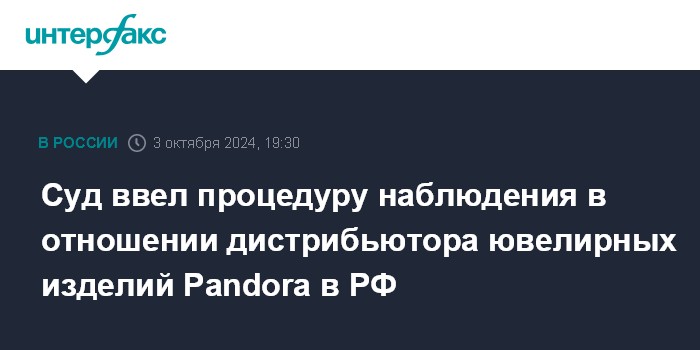 Суд ввел процедуру наблюдения в отношении дистрибьютора ювелирных изделий Pandora в РФ