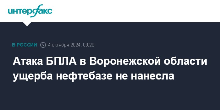 Атака БПЛА в Воронежской области ущерба нефтебазе не нанесла