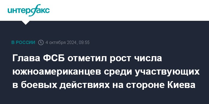 "В последнее время фиксируем увеличение числа наёмников в рядах ВСУ из стран Латинской Америки", - заявил директор ФСБ.