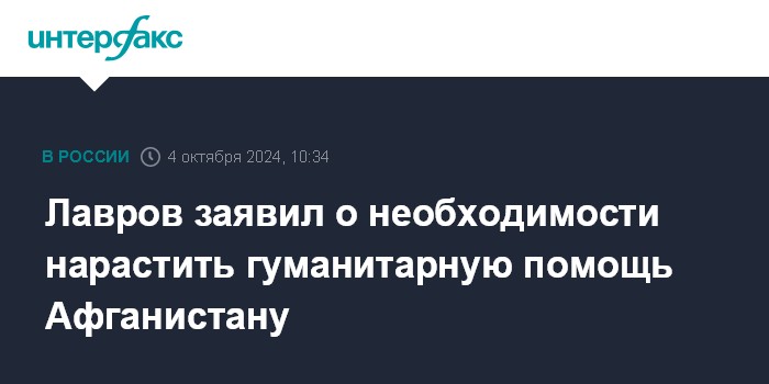 Москва. 4 октября. INTERFAX.RU - Российская сторона считает необходимым увеличение объемов гуманитарной помощи Афганистану и полагает, что этот процесс нельзя политизировать, заявил в пятницу глава МИД РФ Сергей Лавров.