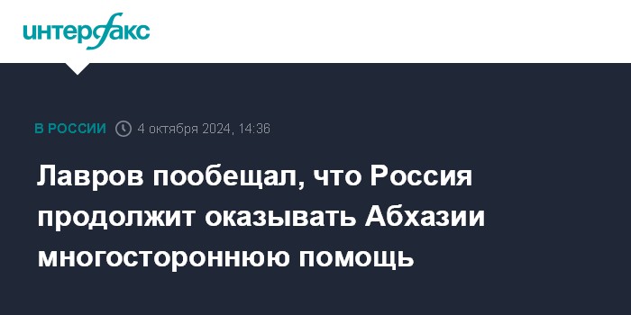 Лавров пообещал, что Россия продолжит оказывать Абхазии многостороннюю помощь
