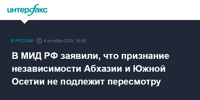 В МИД РФ заявили, что признание независимости Абхазии и Южной Осетии не подлежит пересмотру