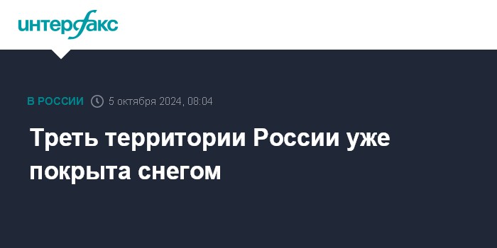 Москва. 5 октября. INTERFAX.RU - Снежный покров установился на 25-30% территории России, снег лежит в регионах азиатской части страны, сообщил "Интерфаксу" научный руководитель Гидрометцентра России Роман Вильфанд.