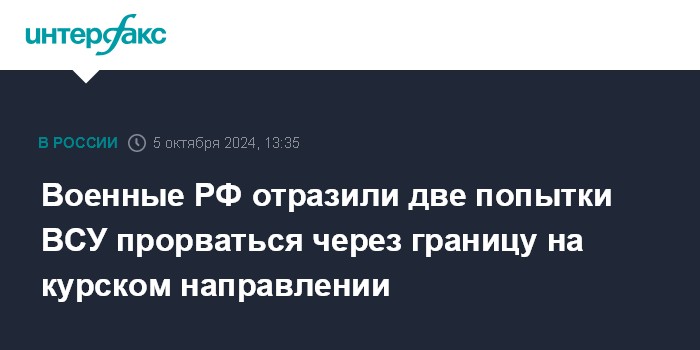 Военные РФ отразили две попытки ВСУ прорваться через границу на курском направлении