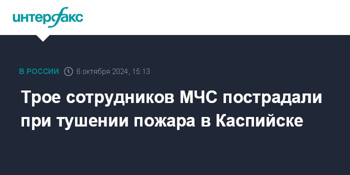 Москва. 6 октября. INTERFAX.RU - На пожаре в дагестанском Каспийске пострадали трое сотрудников МЧС России, сообщает пресс-служба ведомства в воскресенье.