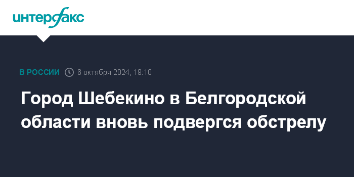 Москва. 6 октября. INTERFAX.RU - Губернатор Белгородской области Вячеслав Гладков сообщил о повторном обстреле Шебекино.
