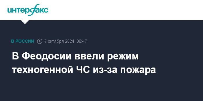 Москва. 7 октября. INTERFAX.RU - В Феодосии из-за пожара на нефтяном терминале ввели режим техногенной чрезвычайной ситуации муниципального характера, сообщил в Telegram глава администрации города Игорь Ткаченко.
