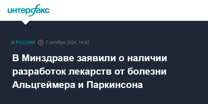 В Минздраве заявили о наличии разработок лекарств от болезни Альцгеймера и Паркинсона