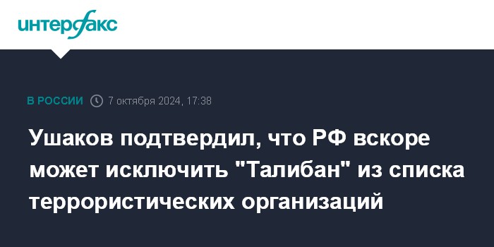 "Да, в этом контексте работа ведется. Я думаю, что да", - сказал Ушаков журналистам. Так он ответил на вопрос, будут ли в ближайшем будущем талибы исключены из российских террористических списков.