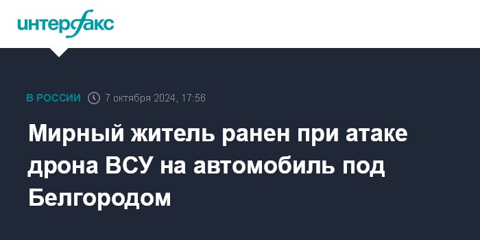 Мирный житель ранен при атаке дрона ВСУ на автомобиль под Белгородом