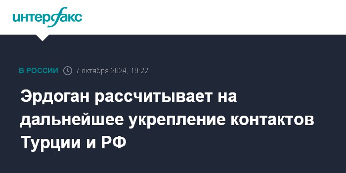 Эрдоган рассчитывает на дальнейшее укрепление контактов Турции и РФ