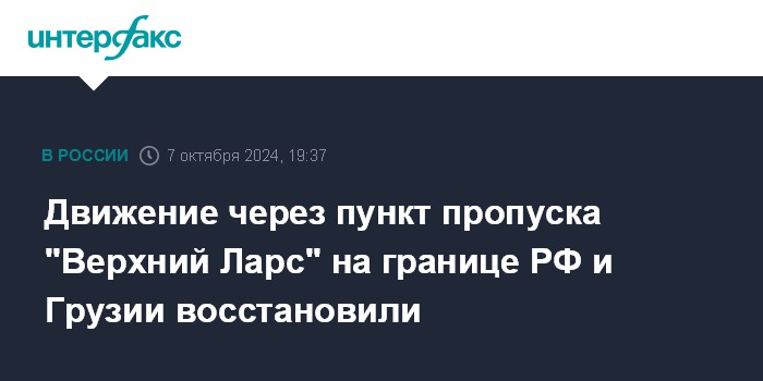 Москва. 7 октября. INTERFAX.RU - Движение автомобилей через пункт пропуска "Верхний Ларс" на российско-грузинской границе восстановлено, сообщило подведомственное Минтрансу РФ ФГКУ "Росгранстрой".