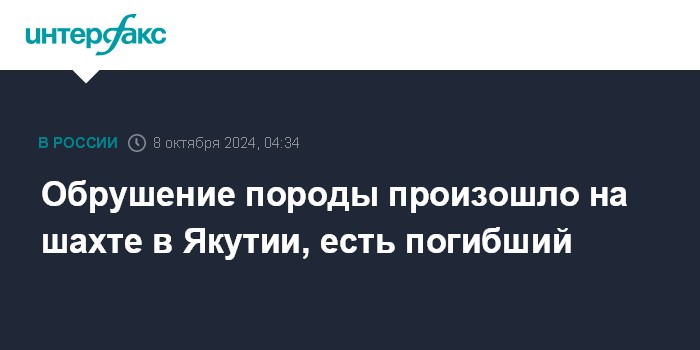 Обрушение породы произошло на шахте в Якутии, есть погибший
