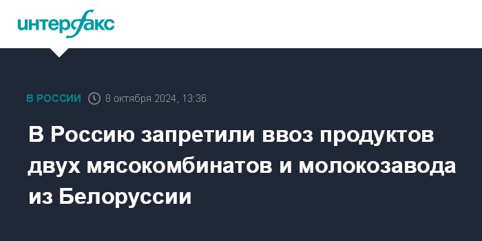"Продукция предприятий, отгруженная в адрес российских получателей до 8 октября 2024 года включительно, принимается в обычном режиме", - добавил Россельхознадзор.