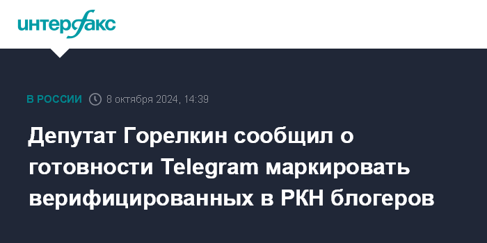 Депутат Горелкин сообщил о готовности Telegram маркировать верифицированных в РКН блогеров