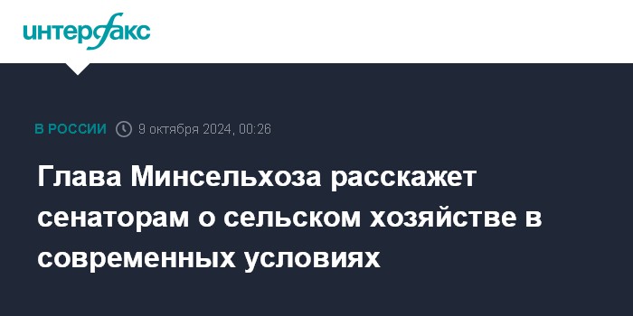 Глава Минсельхоза расскажет сенаторам о сельском хозяйстве в современных условиях