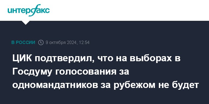 ЦИК подтвердил, что на выборах в Госдуму голосования за одномандатников за рубежом не будет