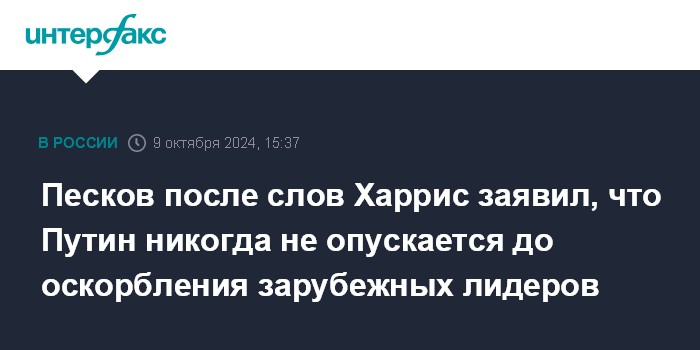 Песков после слов Харрис заявил, что Путин никогда не опускается до оскорбления зарубежных лидеров