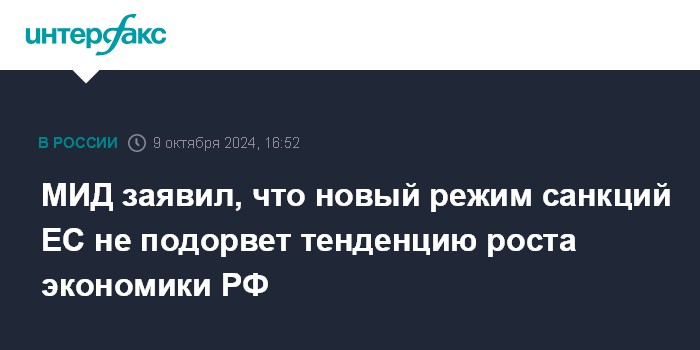 МИД заявил, что новый режим санкций ЕС не подорвет тенденцию роста экономики РФ