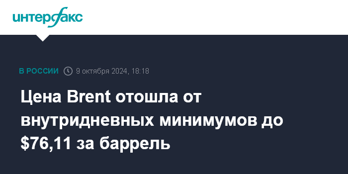 Цена Brent отошла от внутридневных минимумов до $76,11 за баррель