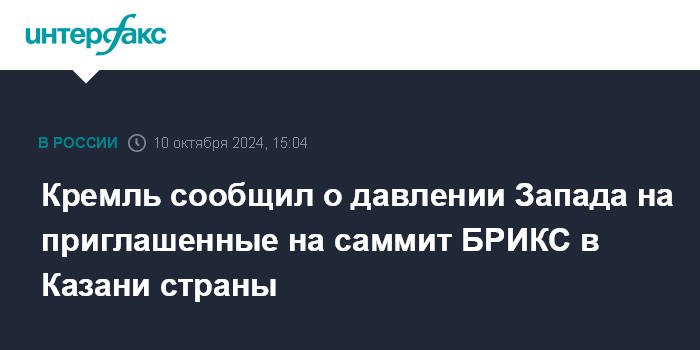 Кремль сообщил о давлении Запада на приглашенные на саммит БРИКС в Казани страны