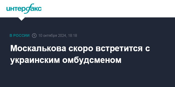 Москва. 10 октября. INTERFAX.RU - Уполномоченный по правам человека в России Татьяна Москалькова сообщила, что в ближайшее время встретится с украинским омбудсменом Дмитрием Лубинцом.