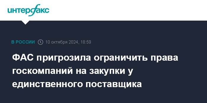 ФАС пригрозила ограничить права госкомпаний на закупки у единственного поставщика