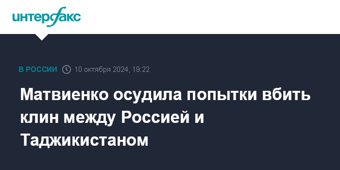 Матвиенко осудила попытки вбить клин между Россией и Таджикистаном