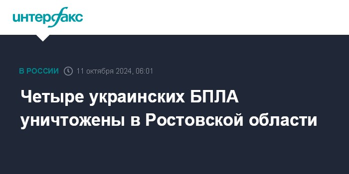 Четыре украинских БПЛА уничтожены в Ростовской области