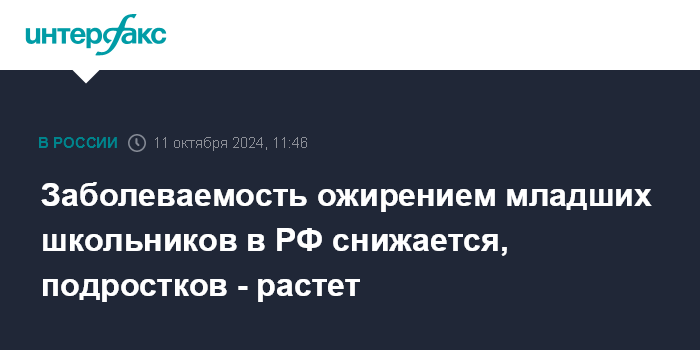 Заболеваемость ожирением младших школьников в РФ снижается, подростков - растет