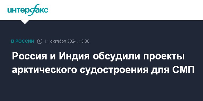 Москва. 11 октября. INTERFAX.RU - Представители России и Индии обсудили совместные проекты в сфере арктического судостроения, сообщил "Росатом" после первого заседания рабочей группы по сотрудничеству по Северному морскому пути (СМП).