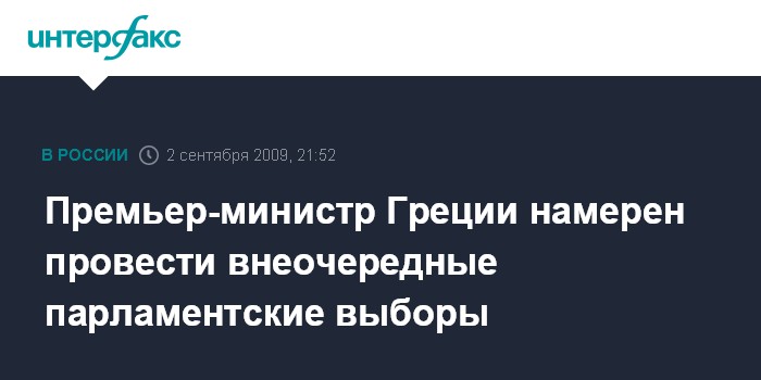 Афины. 2 сентября. INTERFAX.RU - Премьер-министр Греции Костас Караманлис в среду объявил о намерении провести внеочередных парламентских выборов.
