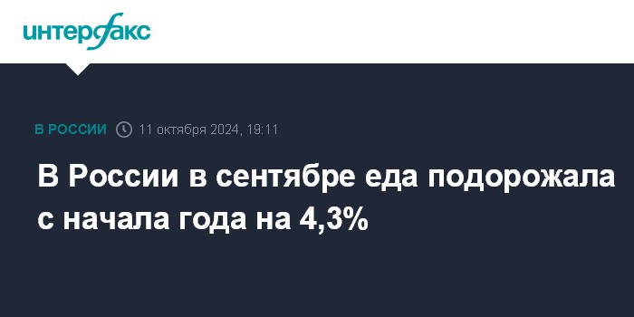 С начала года продукты подорожали на 4,3%, в годовом выражении - на 9,5%.