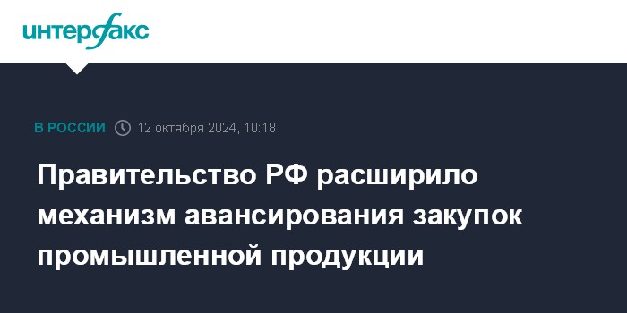 Правительство РФ расширило механизм авансирования закупок промышленной продукции
