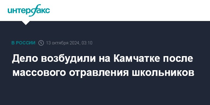 Москва. 13 октября. INTERFAX.RU - Следователи возбудили уголовное дело после того, как ученики одной из школ на Камчатке были госпитализированы с отравлением, сообщает в воскресенье пресс-служба СУ СК РФ по региону.