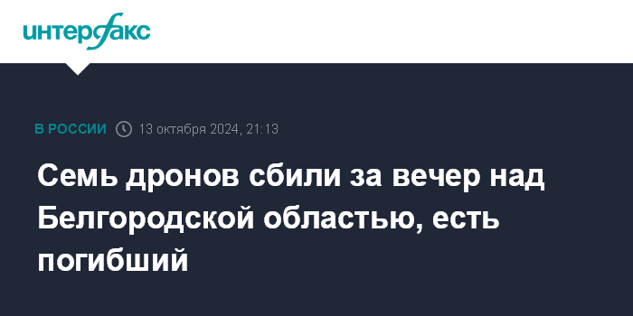 Семь дронов сбили за вечер над Белгородской областью, есть погибший