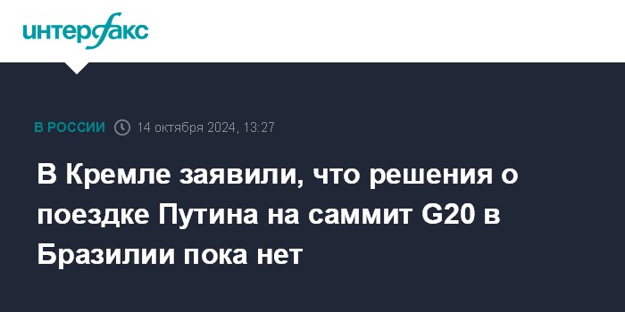 В Кремле заявили, что решения о поездке Путина на саммит G20 в Бразилии пока нет