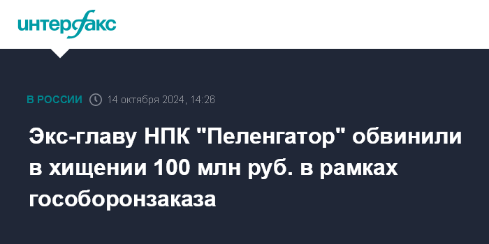Экс-главу НПК "Пеленгатор" обвинили в хищении 100 млн руб. в рамках гособоронзаказа