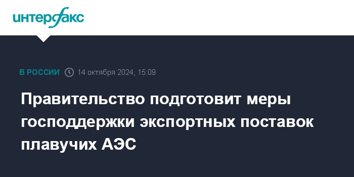 Правительство подготовит меры господдержки экспортных поставок плавучих АЭС